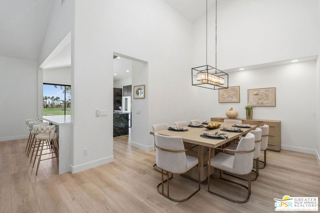 GOLF MEMBERSHIPS AVAILABLE - NO WAITLIST. DESIGNER REMODELED. SINGLE-LEVEL. This highly desirable Willow floor plan in Palm Valley Country Club offers 2,489 sq ft, 3 bedrooms, 3.5 bathrooms, and an attached garage with direct access. Transitional design throughout with brand new appliances, new countertops, cabinetry, lighting and plumbing fixtures, luxury vinyl plank flooring, and remodeled bathrooms with tiled showers. Spacious patio with stunning lake and golf course views surrounded by lush greenery and palm trees, ideal for indoor outdoor desert living. Enjoy two Ted Robinson-designed golf courses, clubhouse, spa, tennis, pickleball, and 46 community pools. SHORT-TERM RENTAL FRIENDLY with strong income potential. FURNISHED per inventory list.